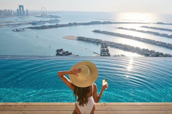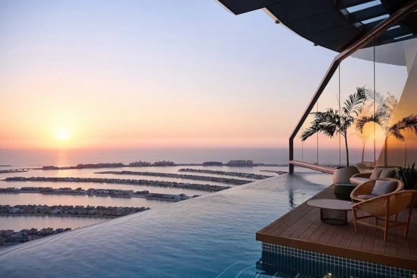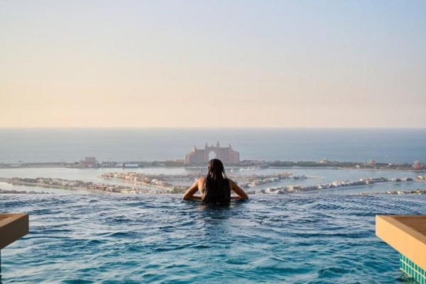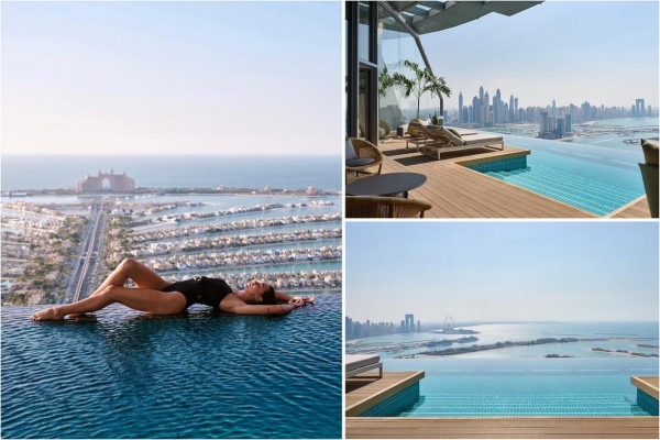 Возбудата од надморска височина и задоволството од пливањето се среќаваат во „Aura Skypool“, највисокиот бесконечен базен во светот, кој се наоѓа на педесеттиот кат на Palm Tower, на островот Palm Jumeirah…