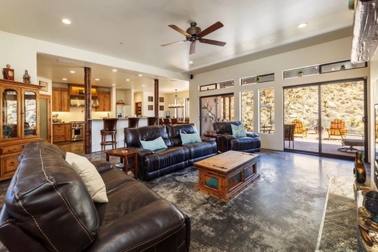 Изградена во 2015 година, адаптираната куќа нуди гаража за три автомобили и речиси 250 квадратни метри станбена површина. Имотот има прилагоден мост што води до планински видиковец, цврста железна влезна врата, опкружувачки стерео систем низ куќата и гаража од 120 квадратни метри.