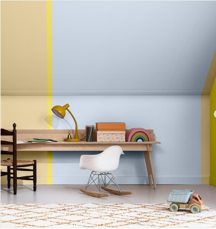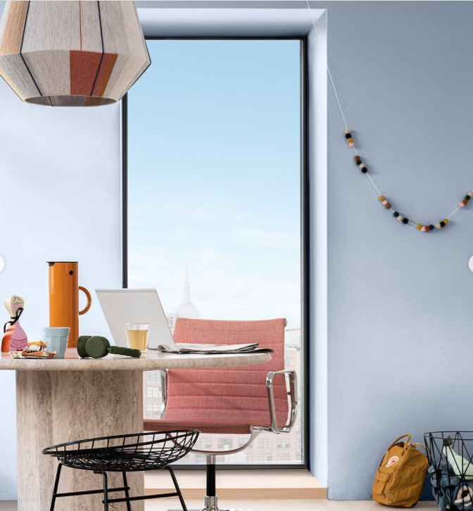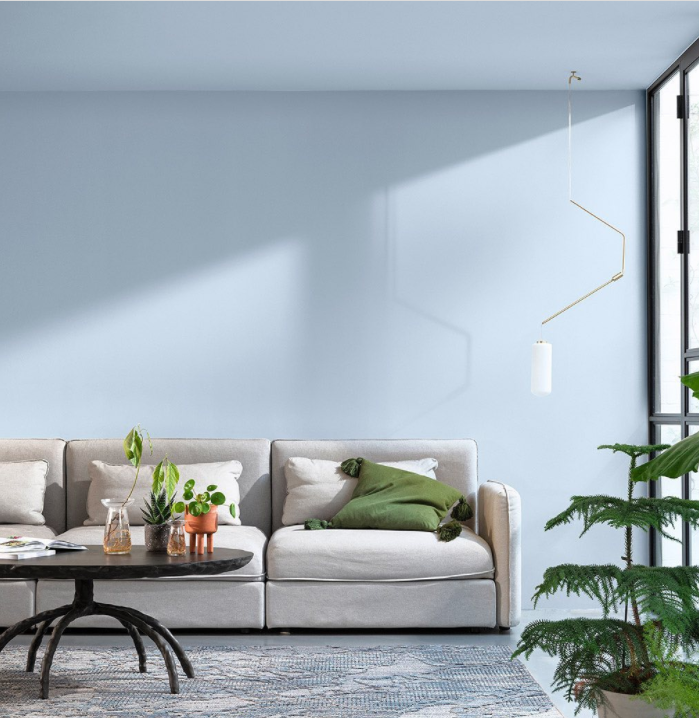 Светло и лесно продирна сина обоеност го зазема местото на суптилните нијанси на зелена боја што доминирале во 2021 година. Сенката наречена „bright skies“ е дизајнирана како здив на свеж воздух и небесно сино оптимизам во внатрешноста на домот. Сепак, има уште една паметна употреба – ги прави малите простории визуелно поголеми.
