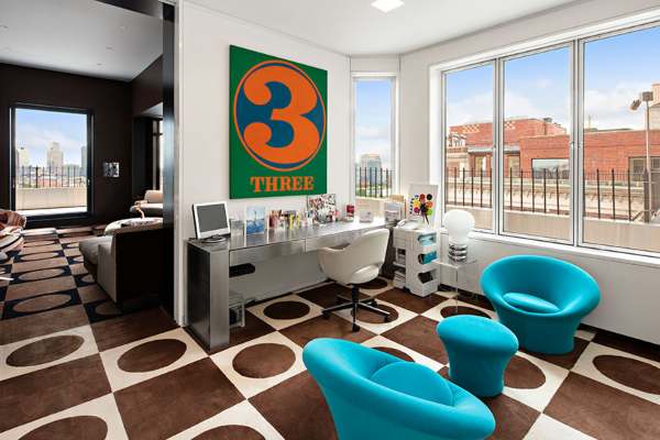 Лиза Пери целосно го реновираше пентхаусот, претворајќи го во две одделни крилја – едното за секојдневниот живот, другото за забава.