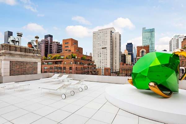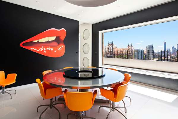 Она што го издвојува овој пентхаус од другите се 550 квадратни метри надворешни тераси со неверојатен поглед кон мостот Queensboro и реката East. Кога додавате масивни прозорци од таванот до подот, тогаш добивате простор за живеење што се чини дека излегол од страниците на стриповите.