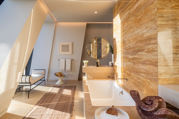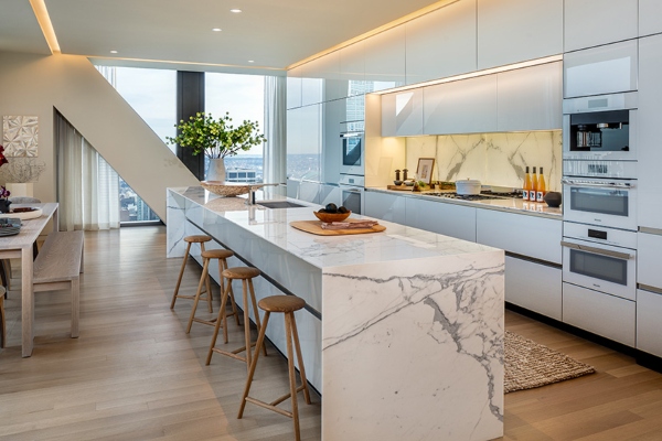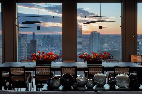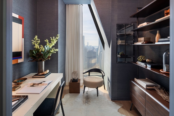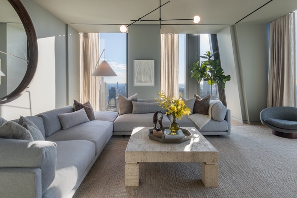 Сепак, погледот што се протега низ неговите прозорци нема да може да го украде целото внимание на величествено украсениот ентериер, дело на Ребека Робертсон. Според наводите, овој стан со четири спални соби и четири и пол бањи има димензии од околу 640 квадратни метри, а може да се купи по цена од 46.680.000 милиони долари, додека е достапен дури и неговиот мебел, со пораст на цената, секако. Сместен на шеесет и петтиот кат од станбена кула лоцирана над музејот МоМА во Њујорк, станот е дел од зграда дизајнирана од Жан Нувел, со ентериери што се дело на Тиери Деспонд.