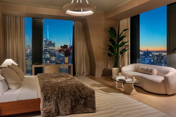 Сепак, погледот што се протега низ неговите прозорци нема да може да го украде целото внимание на величествено украсениот ентериер, дело на Ребека Робертсон. Според наводите, овој стан со четири спални соби и четири и пол бањи има димензии од околу 640 квадратни метри, а може да се купи по цена од 46.680.000 милиони долари, додека е достапен дури и неговиот мебел, со пораст на цената, секако. Сместен на шеесет и петтиот кат од станбена кула лоцирана над музејот МоМА во Њујорк, станот е дел од зграда дизајнирана од Жан Нувел, со ентериери што се дело на Тиери Деспонд.