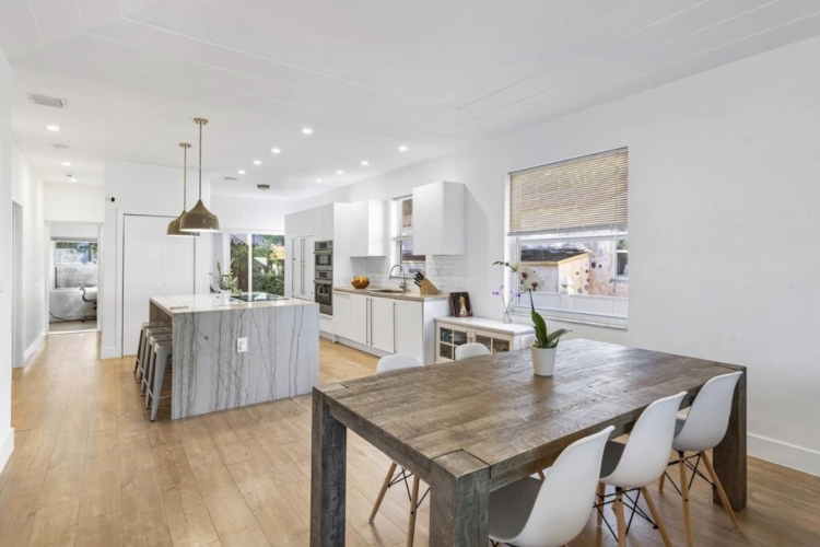 Како што влегувате, фоајето води до одлична просторија која има дневна соба со камин и трпезарија, кујна опремена со елегантни бели кабинети, кујнски остров и врвни апарати од нерѓосувачки челик.