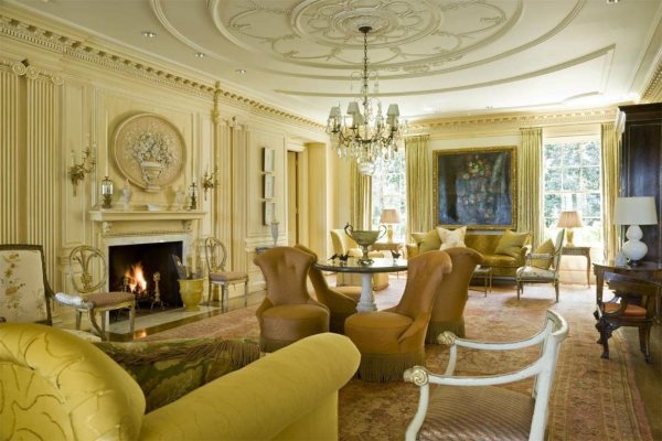 Импозантниот влез се отвора кон свечено фоаје што води до семејните соби. На вториот кат има голема спална соба, приватна канцеларија и теретана. На горниот кат има четири спални соби и три купатила. Во подрумот има лифт што води до сите катови.