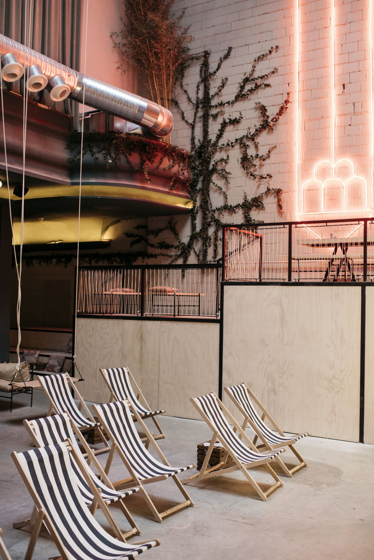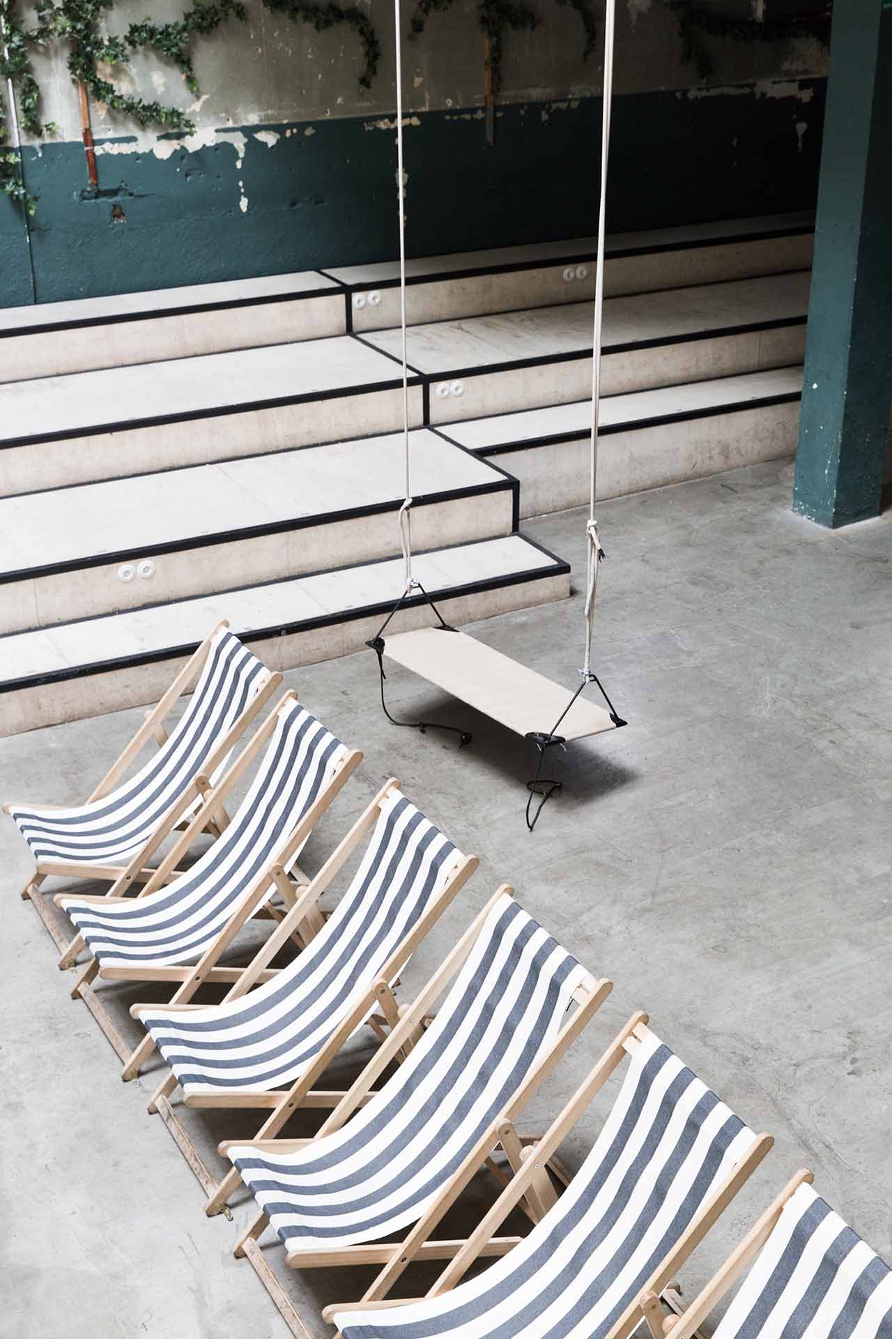 Најдобриот дел се наоѓа во средината на просторот на приземјето, исполнет со секојдневен мебел на отворено. Избрани се столици за плажа и градинарски софи за нивната флексибилност, така што просторот може брзо да се трансформира во зависност од закажаните програми. Кино салата е реновирана и сега е интимен простор каде можат да се сместат максимум 64 гледачи. Во салата доминира црвениот плиш, што придонесува за атмосферата на мистерија и удобност.