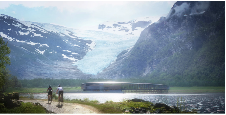 Сместен на кристално чистите води на фјордот Холандсфјорден, во основата на самиот глечер, ќе има кружен дизајн со стакло, кој обезбедува панорамски поглед од 360 степени на фјордот, глечерот, а во зимските месеци, спектакуларна северна светлина, сето тоа без да се компромитира приватноста на гостите.