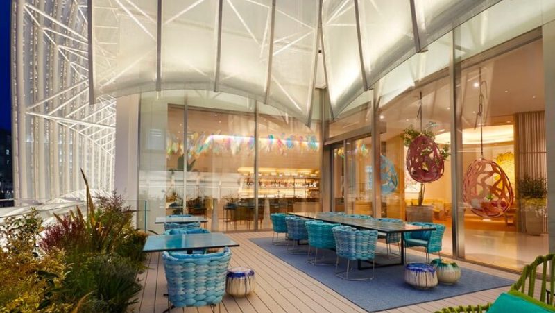 Le Cafe V се наоѓа на последниот кат на четирикатниот бутик Louis Vuitton и има тераса на покривот, каде ќе се служат коктели за време на потоплите месеци. Ресторанот Sugalabo V го поддржува концептот на истоимениот бар Јосуке Суга во Токио и е отворен само во текот на вечерта.