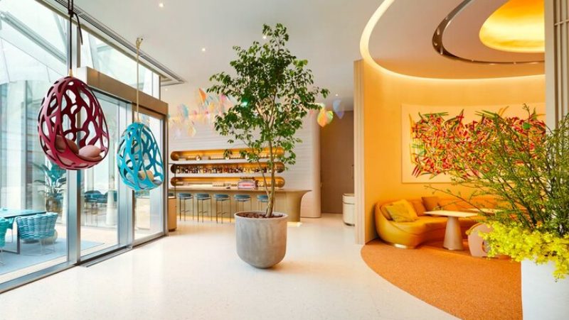 Ентериерот е дизајниран од дизајнерот Јун Аоки, инспириран од брод на морските води.