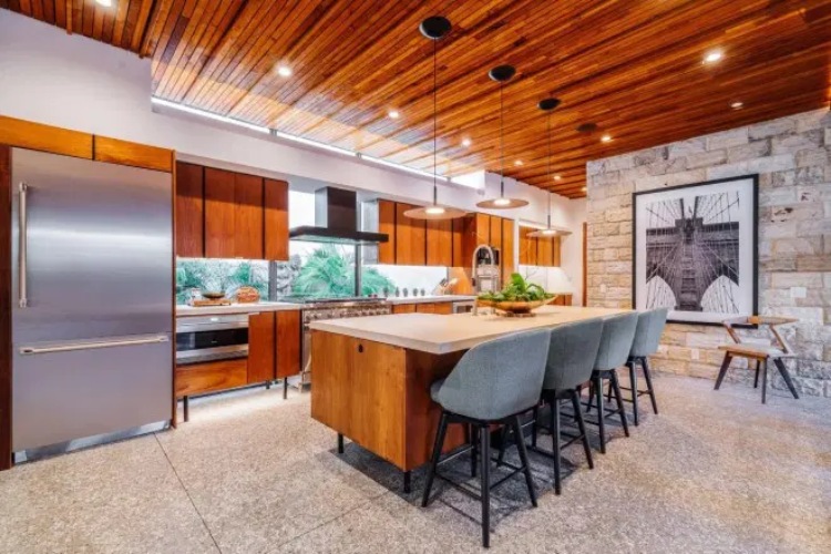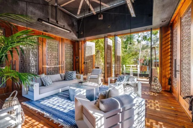 Изграден во 2009 година од страна на LEED, сертифициран градител Sorensen Architects, домот отелотворува комбинација на убавина, одржливост и иновативен дизајн. Куќата ги обединува сите елементи – земја, воздух, оган и вода и нуди беспрекорна, приватна оаза во срцето на кањонот Санта Моника. Архитектонското богатство има древна порта и камин украсен со акценти на индонезиски корали.