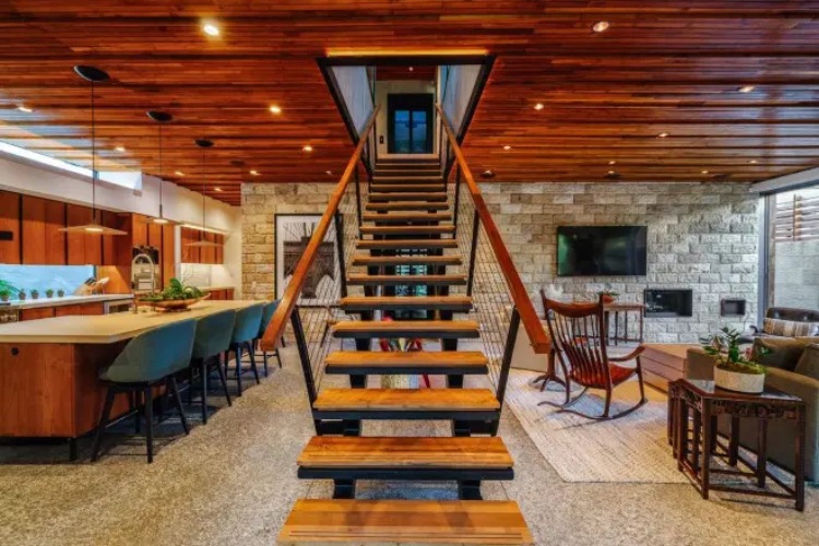 Величествениот простор сличен на одморалиштето има и терацо подови, челични врати и прозорци со ласерски пресек, приспособени италијански стаклени лифтови и подвижни покриви. Со својата софистицираност и еколошки свесни детали, оваа куќа се рекламира на пазарот како една од највпечатливите и најинтересните во Лос Анџелес и се продава за 9,5 милиони долари.