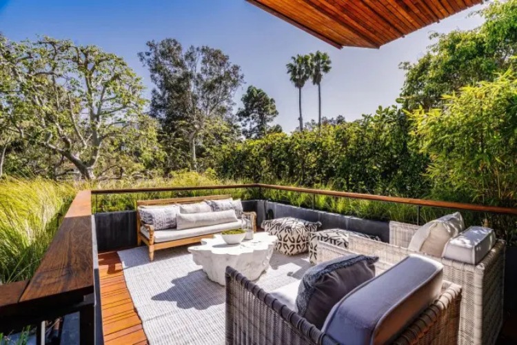 Прекрасната куќа во Санта Моника се простира на 470 квадратни метри простор за живеење со екстериери кои го одземаат здивот. Куќата има четири спални соби и пет бањи, а прекрасните карактеристики вклучуваат водопади, бујни градини, варовнички ѕидови со поделени површини, цврсто тиково дрво и органски материјали. На отворено, опкружено со зеленило, има езерце, бања и гаража за неколку автомобили.