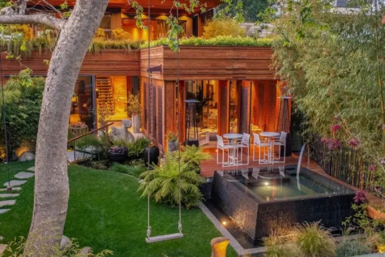 Изграден во 2009 година од страна на LEED, сертифициран градител Sorensen Architects, домот отелотворува комбинација на убавина, одржливост и иновативен дизајн. Куќата ги обединува сите елементи – земја, воздух, оган и вода и нуди беспрекорна, приватна оаза во срцето на кањонот Санта Моника. Архитектонското богатство има древна порта и камин украсен со акценти на индонезиски корали.