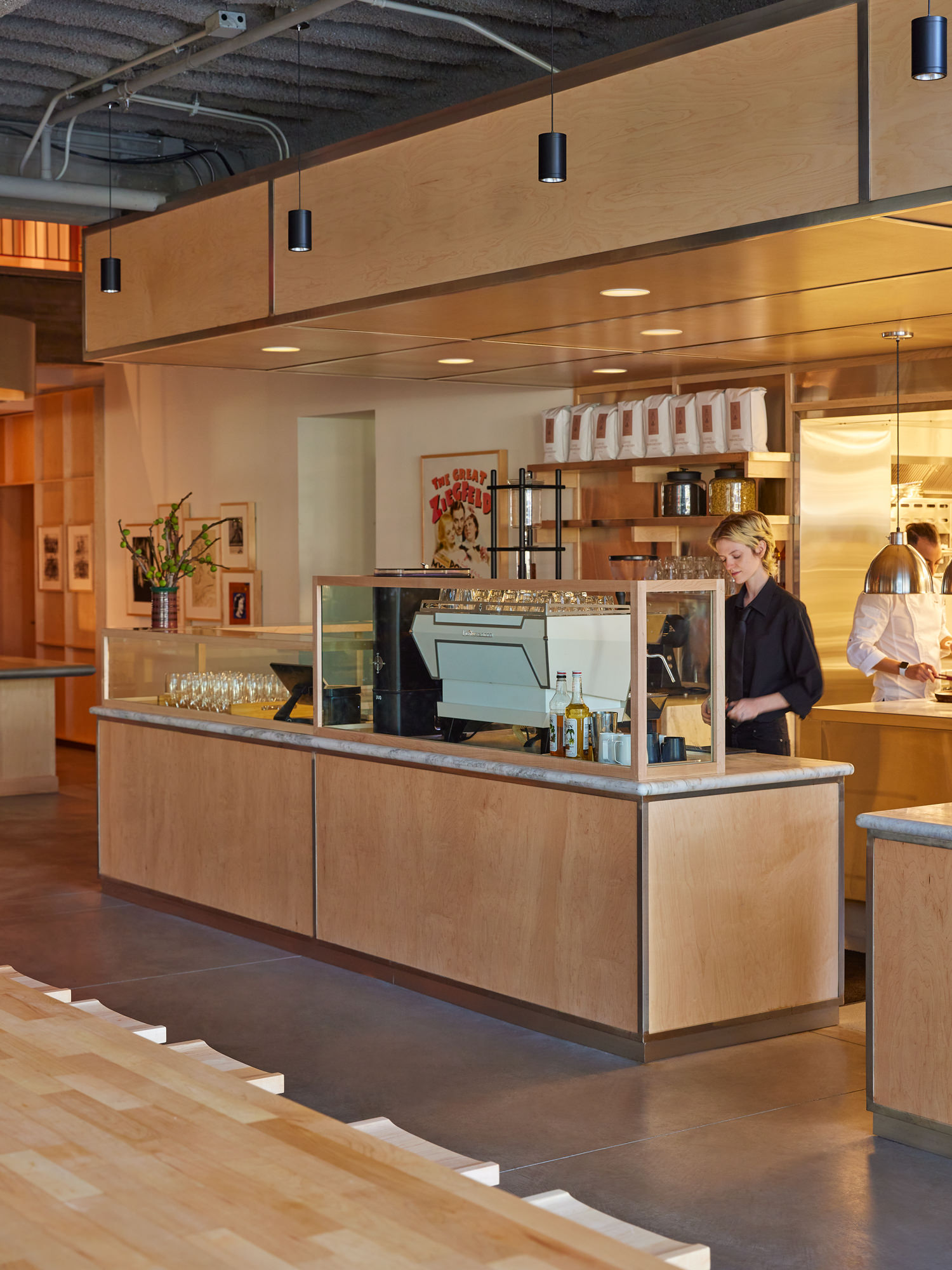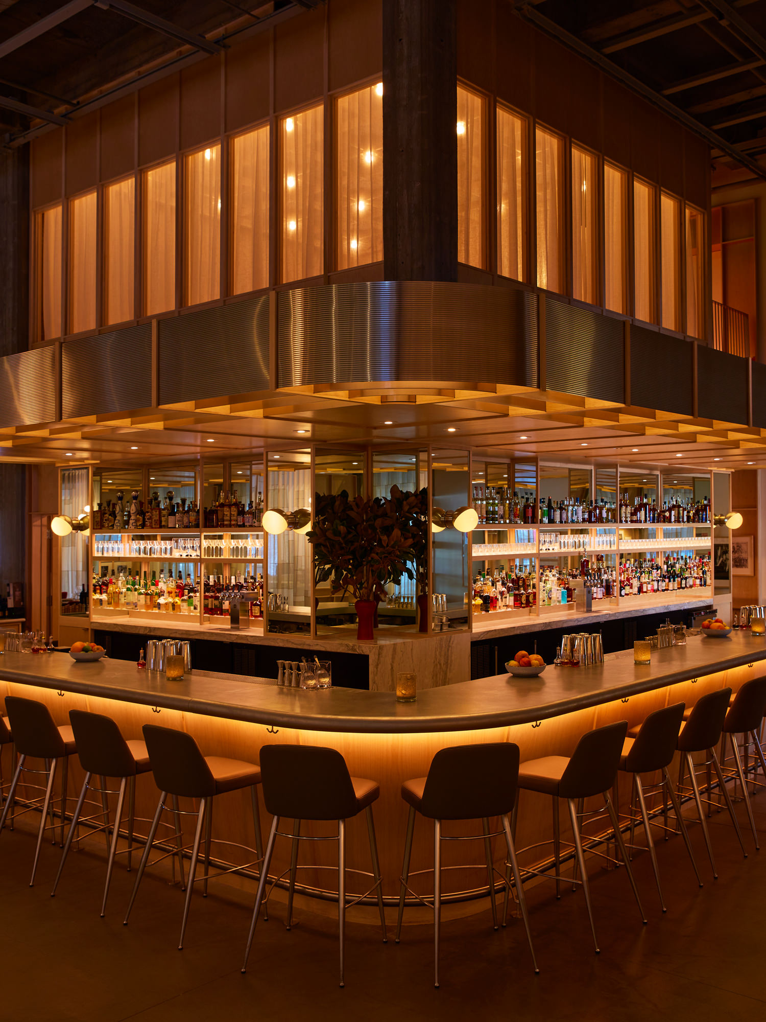 Како главна референца, дизајнерите ја искористија атмосферата на култните места на стариот Холивуд, како што се Перино и Браун Дерби. Духот од тоа време е пренесен со помош на црно-бели фотографии на ѕидовите, пригушени беж и кафени нијанси кои потсетуваат на стар филм и мебел во ретро стил. Во исто време, ретро естетиката на ресторанот одлично се вклопува во модерната минималистичка архитектура на музејот, дизајнирана од Ренцо Пијано.