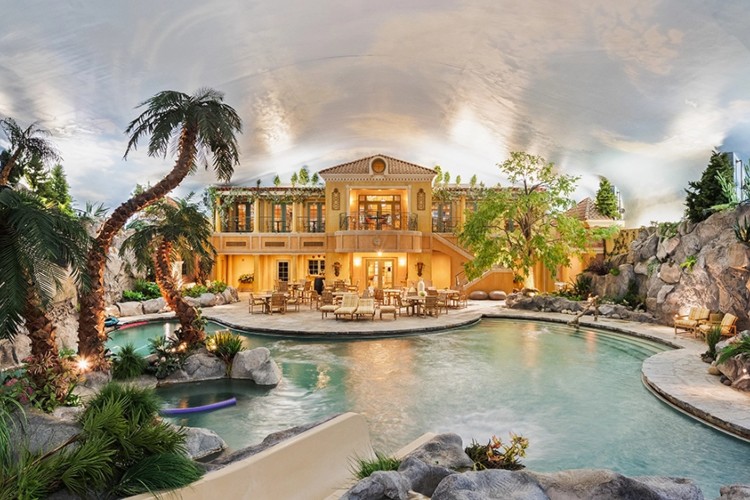 Неверојатниот имот има свој аква парк инспириран од хотелот Bellagio во Вегас. Размислете за тавани обоени со облаци, водени тобогани, водопади и палми. Водниот парк е сместен во „спа зграда“ од 5.500 квадратни метри, која е изградена кон крајот на 1990-тите.