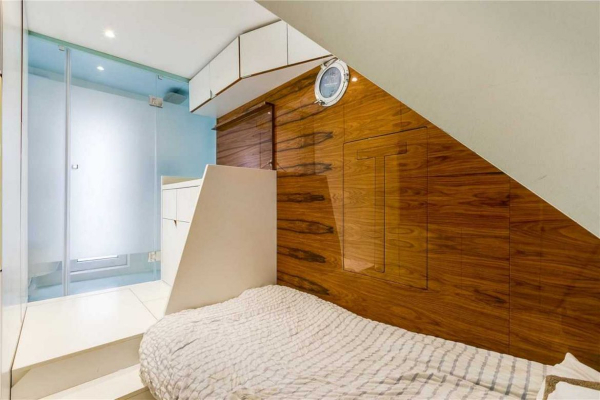 Реално, подобро е да напишеме соба или микро стан, бидејќи во никој случај ова не може да се смета за вистински стан. Во него не можете да вметнете ниту два редовни душеци еден до друг. Станот во приземјето во Пимлик, централен Лондон, нè потсетува на првото сместување во Хари Потер – плакар под скалите. Станот се состои од еден кревет, мала бања, работна површина и мал фрижидер, со микробранова печка сместена на дното на креветот. Покрај тоа, станот доаѓа со пристап до „терасата“, што е всушност рамен покрив со поглед на задниот дел од зградата однапред.