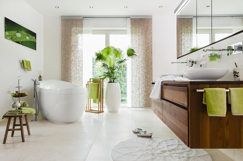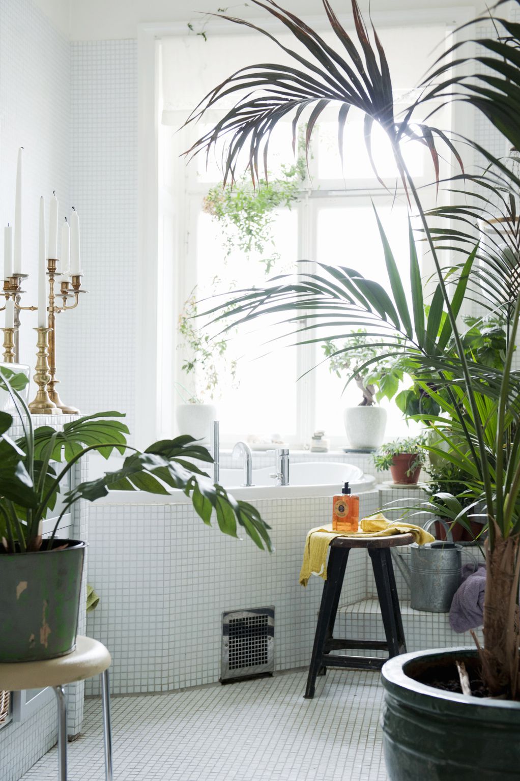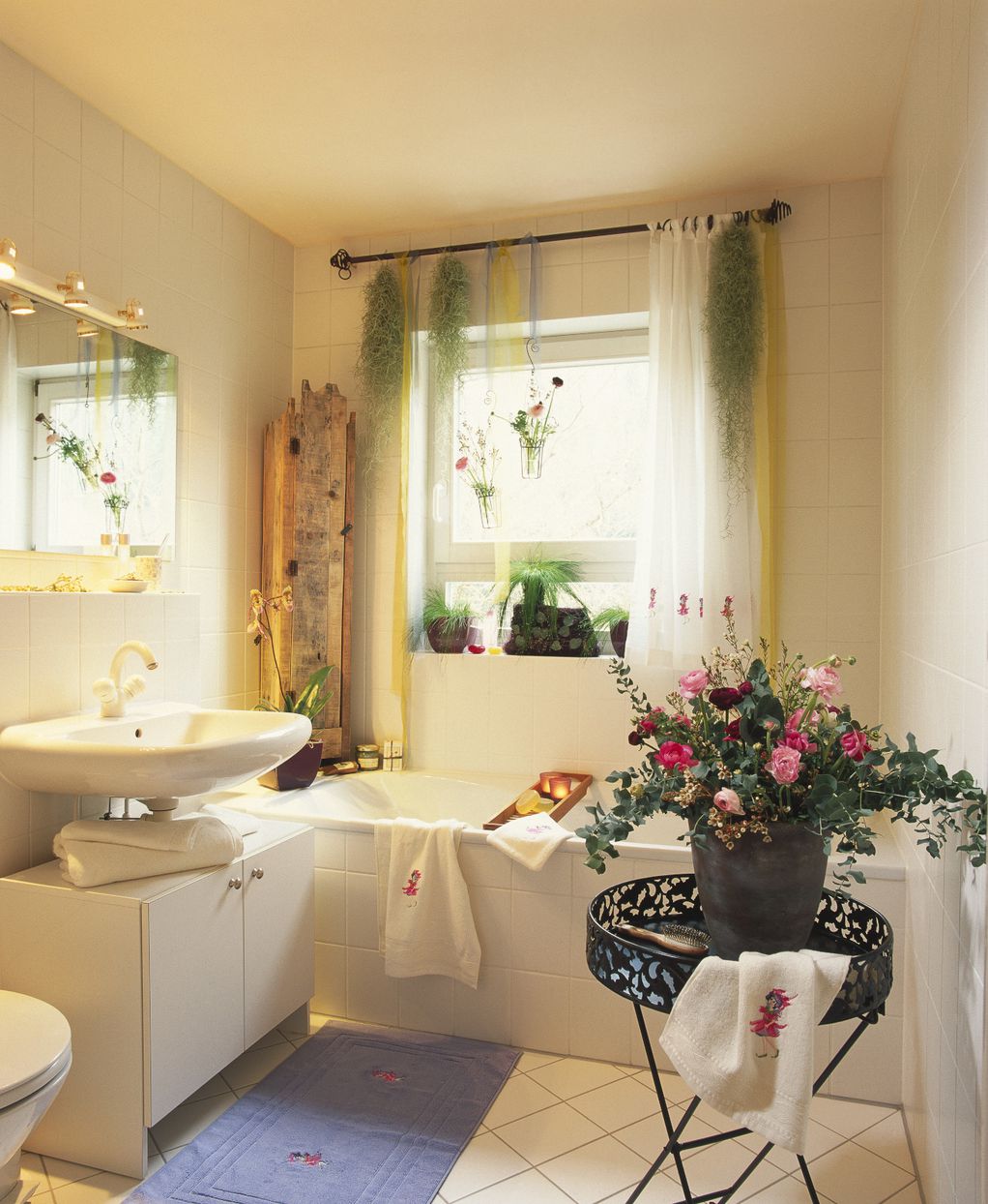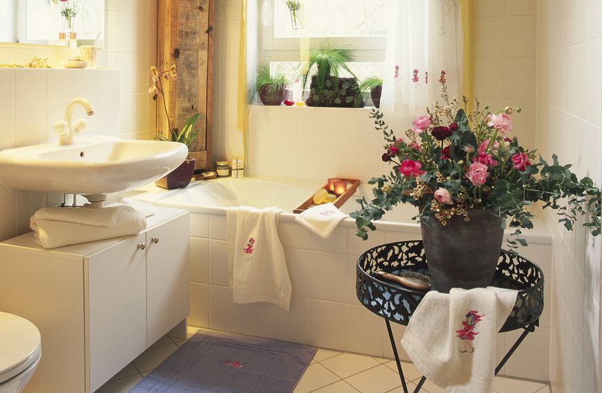 За украсување на бањата, изберете растенија што сакаат топли, влажни простори, а одличен избор ќе бидат папрат, вилинка, сребрен бамбус, растение пајак, орхидеи и слични растенија. Исто така, пожелно е бањата да има прозорец, така што растенијата добиваат доволно природна светлина.