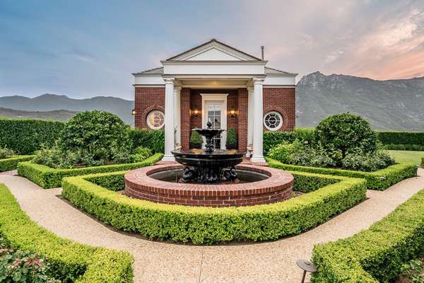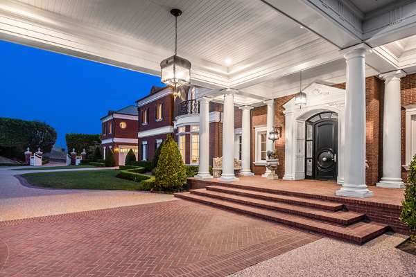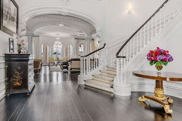 Ситната камена патека ве води до кружен паркинг украсен со централна фонтана, покриен влез и импозантна врата граничена со бели столбови. Фоајето со двојна висина има фантастични лакови и грандиозно, заоблено скалило што ве носи на друго ниво.