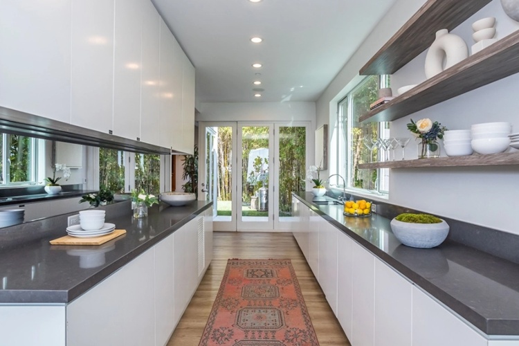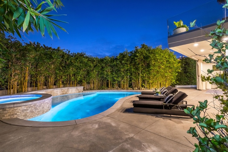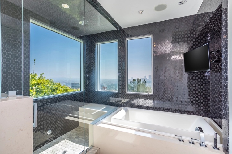 Задниот двор има базен, топла када и бар на отворено, а домот вклучува и домашно кино, теретана, канцеларија и гаража со два автомобили.