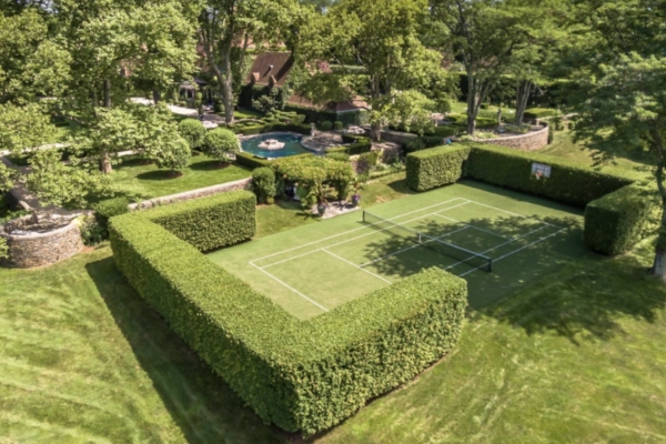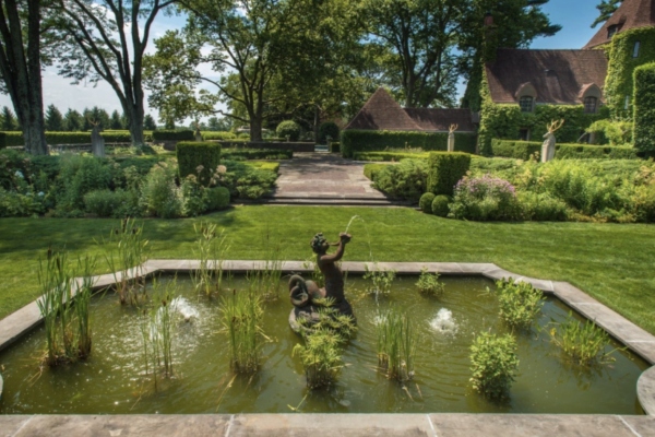 На имагинативниот амбиент на имотот придонесуваат и покривите од керамиди, холандски ѕидови од тули и жива ограда што дефинира бројни градини: градина со рози со фонтана, градина на вода од малото езеро, кои има и прекрасен дел со жива ограда. Високата позиција на имотот им овозможува на сопствениците уживање во прекрасен поглед, кој се протега до панорамата на Менхетен и задната вода на Лонг Ајленд.