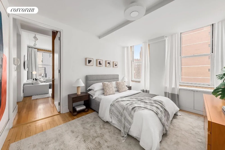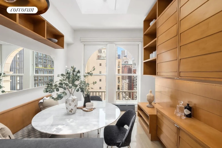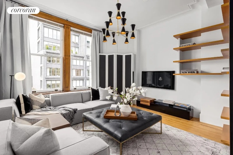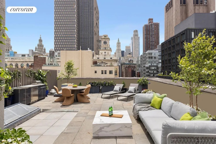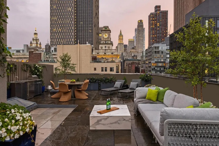 Прикачен на друга единица под оригиналниот пентхаус, ултрамодерниот дуплекс сега има четири спални соби и четири бањи на двете нивоа, како и неверојатна тераса на покривот од 93 квадратни метри за релаксација со поглед на Емпајер Стејт Билдинг.