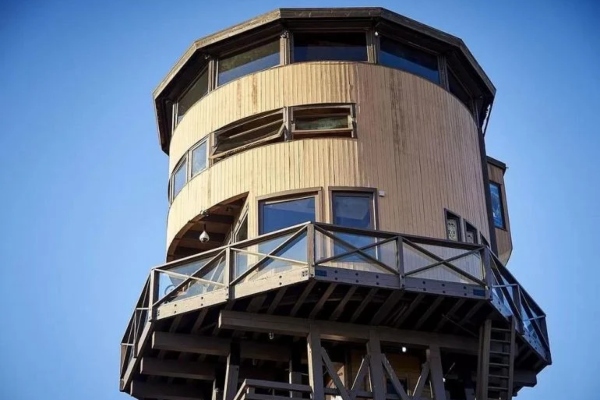 Уникатниот дом сместен во трансформирана водена кула, на висина од 26 метри, која се најде на пазарот по цена од 5 милиони долари. Целосно комплетен со четири спални и четири бањи, овој дом има уникатна конструкција поставена на врвот на дрвена конструкција, првично изградена во 1800-тите години. Куќата се наоѓа на аголот од станбена зона со поглед на фреквентниот автопат Pacific Coast, на само 45 метри од брегот.