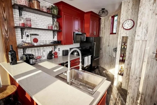 Имотот како целина доби амбиент во ретро стил, со витраж купола во ротондната дневна соба и модерни удобности како што се HD телевизор со директни ТВ опции, фини постелнини, реновирани бањи и комплетно опремена кујна.