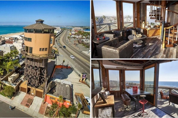 Уникатниот дом сместен во трансформирана водена кула, на висина од 26 метри, која се најде на пазарот по цена од 5 милиони долари. Целосно комплетен со четири спални и четири бањи, овој дом има уникатна конструкција поставена на врвот на дрвена конструкција, првично изградена во 1800-тите години. Куќата се наоѓа на аголот од станбена зона со поглед на фреквентниот автопат Pacific Coast, на само 45 метри од брегот.