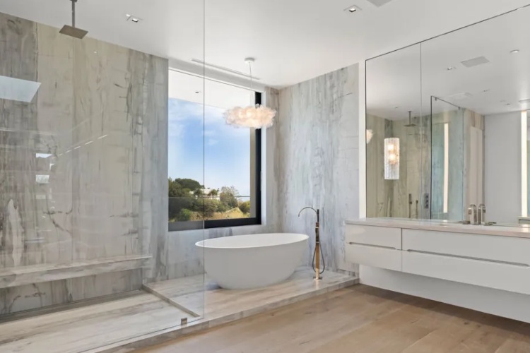 Горе, примарниот апартман има спална соба со приватна тераса, двојни бањи и двојни гардероби. Секако, вилата е опремена и со најсовремен фитнес центар.