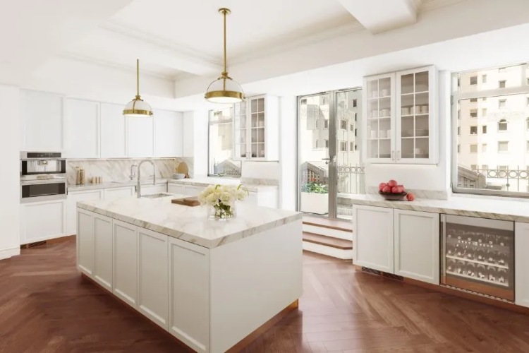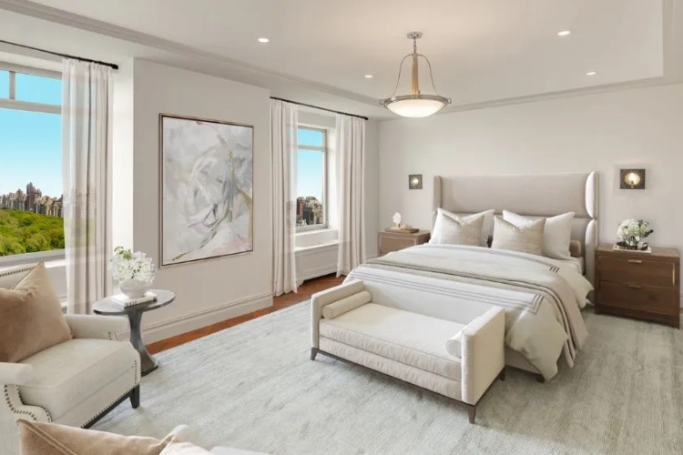 Галеријата со прозорци ќе ве одведе до основниот апартман од 250 квадратни метри, во основа доволно голем за да биде сопствен стан. Прекрасниот примарен апартман може да се пофали со библиотека свртена кон парк, трпезарија која служи како медиумска соба, две бањи и повеќе плакари отколку што можеме да изброиме.