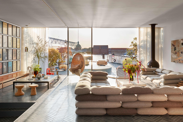 Како што се очекуваше, великодушно дизајнираниот ентериер е опремен со парчиња мебел чиј дизајн го потпишува самиот Ингелс, заедно со дела од многу други познати имиња и сувенири што овој пар ги собрал за време на нивните светски авантури. Просторот е поделен на две нивоа, каде на другото има дневна соба со врвен поглед, висечки камин и софа за изјава потпишана од Кибиси. Од друга страна, има отворена кујна чиј дизајн е дело на италијанскиот архитект, Лика Ципелети, и кој е осветлен од креациите на Ингелс. SS Ingels е крунисан со идилична тераса на покривот, која нуди прекрасен поглед.