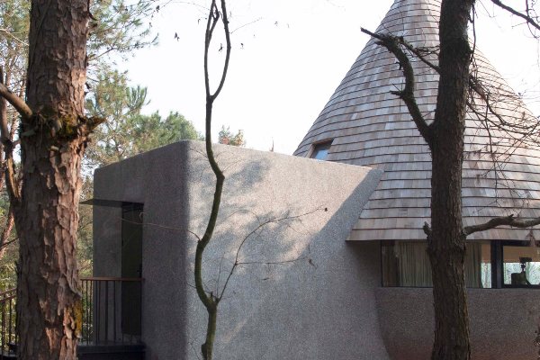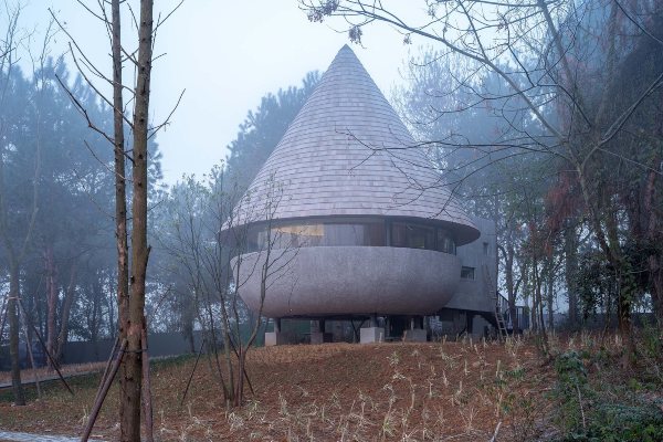 Архитектонската фирма ZJJZ неодамна ја заврши градбата „The Mushroom“, уникатна мала куќа опкружена со борова шума во кинескиот град Жангси. Дизајнот на куќата вклучува кровна конструкција обложена со дрвени ќерамиди, која ја надополнува гранолитната бетонска основа и полека ќе ја менува бојата со текот на времето, овозможувајќи викендичката да се вклопи донекаде со околната природна средина, нудејќи голема приватност на своите станари и неверојатна количина удобност во внатрешноста, без оглед на малата квадратура.