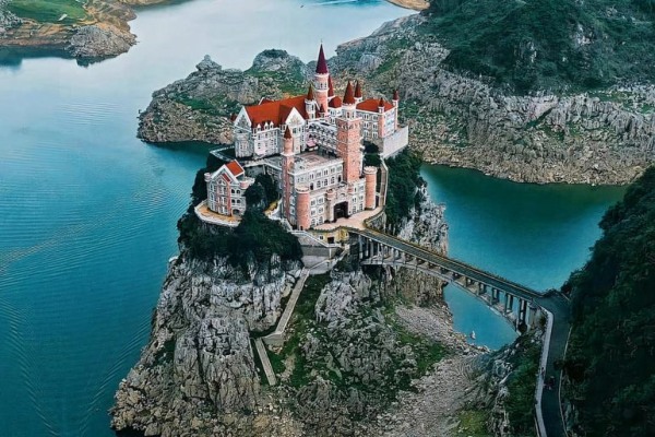 Во Кина е можно да се видат зачудувачки мостови, модерни структури и бесконечни полиња со неверојатни облакодери, но самата помисла на замокот дизајниран во бајковитата природа на оваа азиска земја звучи сосема неверојатно. Сместен на малиот остров езерото Вангфенг во североисточната кинеска провинција Гвижоу, неверојатниот Jilong Castle Country Club Resort може да засрами многу роднини од Баварија.