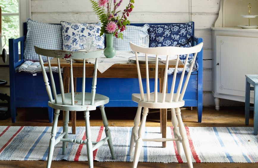 Во колибата, соодветно, доминира дрвен мебел во бела, кафеава и сина боја, додека жолто обоените sидови му даваат на ентериерот посебна спокојство. Со многу едноставен аранжман, се создаде простор што освојува на прв поглед и во кој радо би поминеме краток одмор.