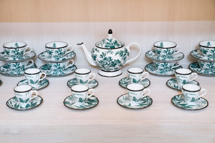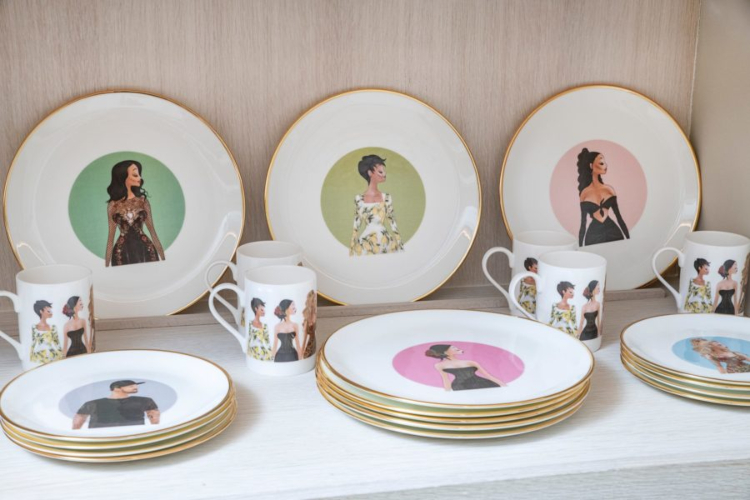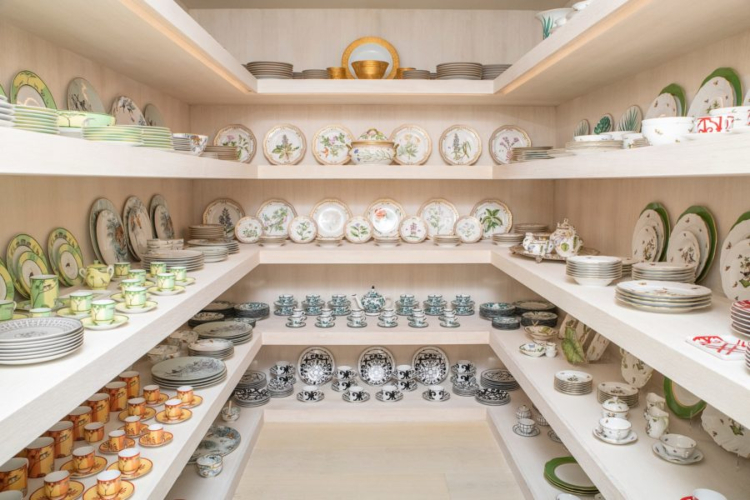 Сега имаме можност да ѕирнеме внатре во нејзината вила, поточно во посебна просторија каде се наоѓа вредниот дизајнерски прибор. Собата (повеќе како просторија за миење садови) изгледа многу луксузно со чајник Гучи од 640 долари, садови Хермес од 550 долари и голем број чинии и садови од најфиниот порцелан. Меѓу колекциите на јадења Хермес и Гучи, се издвојуваат неколку чинии и чаши, кои се издвојуваат со насликани портрети на нејзините познати ќерки.