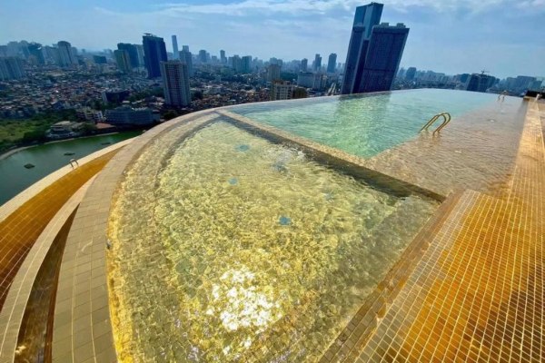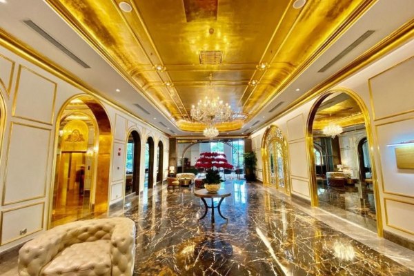 Сместен во Ханој, овој хотел го носи името The Dolce by Wyndham Hanoi Golden Lake. Доколку сакате да уживате во чист луксуз, знајте дека овој хотел нема да ве разочара на кој било начин, туку ќе ве опие со неверојатна доза злато и сјај. Како и да е, иако се вели поговорката дека не сјае сè со злато, во овој случај тоа е вистина – од чаши за кафе, кади, мијалници, тоалетни чаши, до неверојатниот бесконечен базен на покривот, кој е украсен со позлатени плочки.