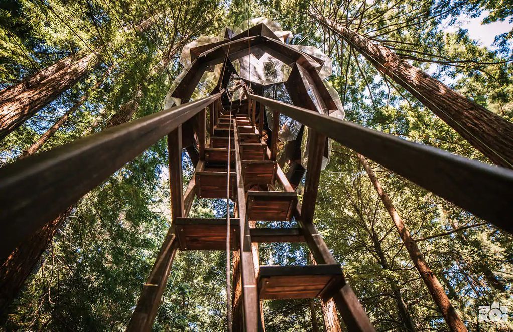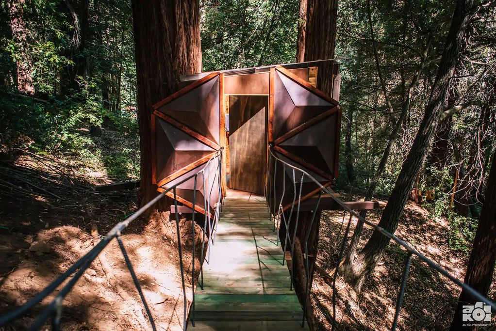 На 10 метри над земјата, лебдејќи покрај гранките на волшебната шума од црвено дрво во Bonny Doon, Калифорнија, се наоѓа The Treehouse Pinecone. Оваа колиба во форма на конус со една спална соба нуди спектакуларен поглед од 360 степени на околината.