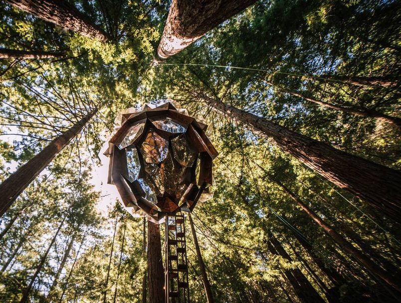 На 10 метри над земјата, лебдејќи покрај гранките на волшебната шума од црвено дрво во Bonny Doon, Калифорнија, се наоѓа The Treehouse Pinecone. Оваа колиба во форма на конус со една спална соба нуди спектакуларен поглед од 360 степени на околината.