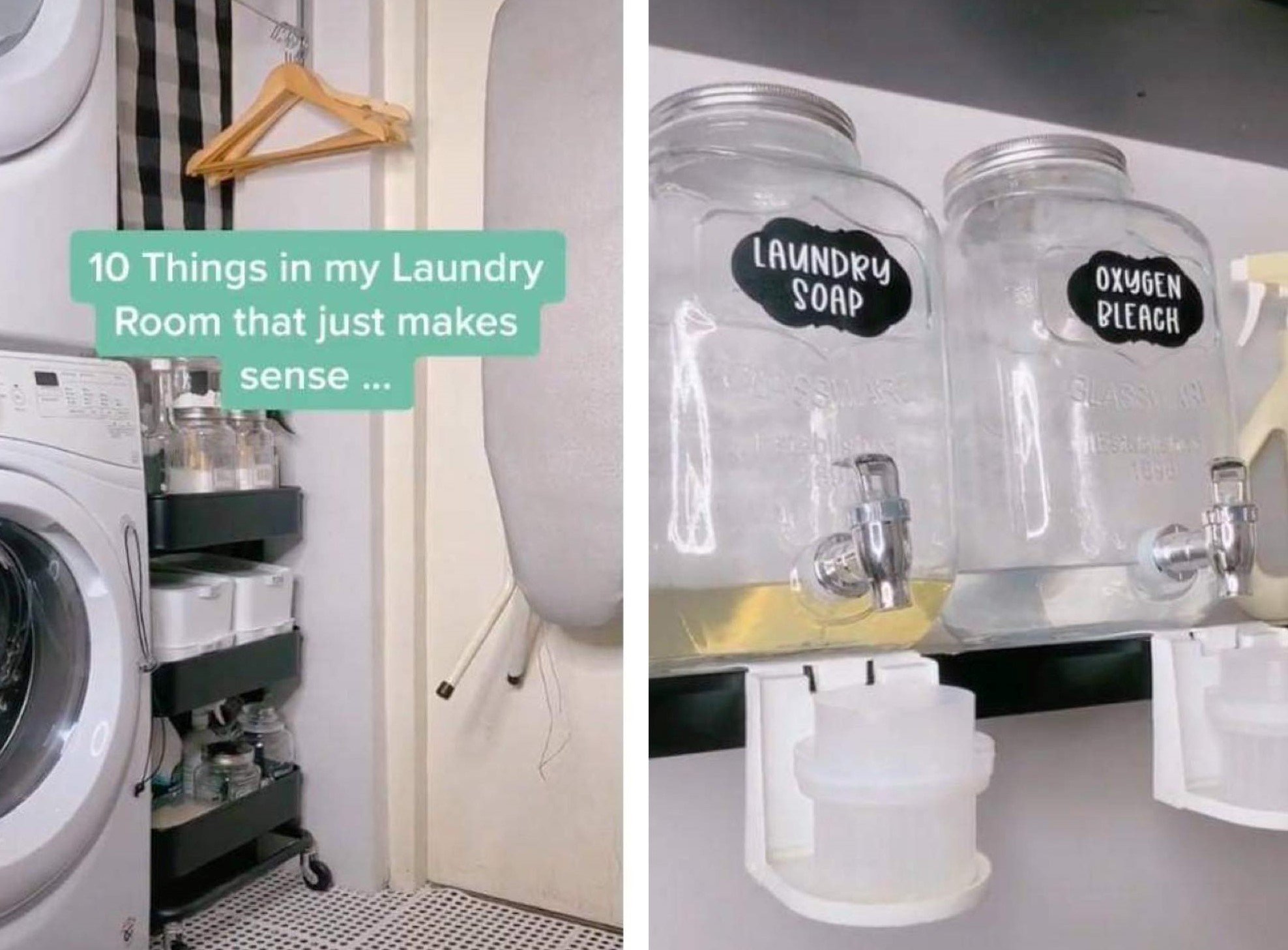 8. Чувајте течен детергент и белило во тегли со мали славини