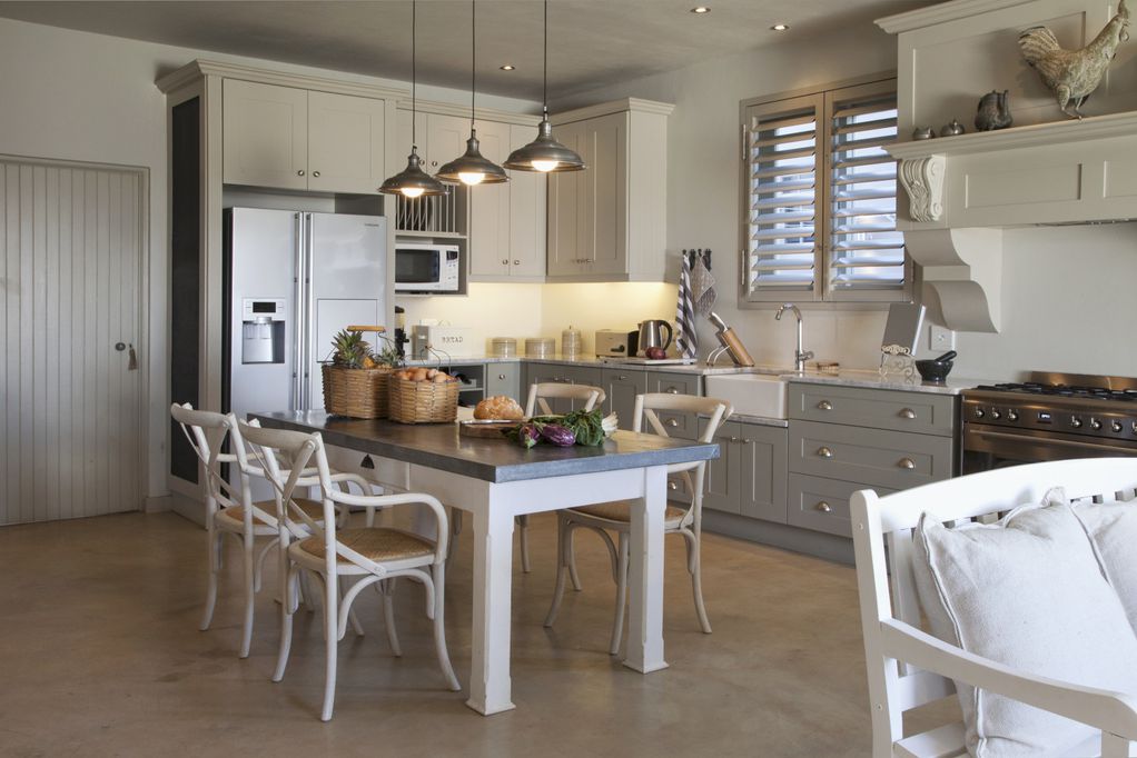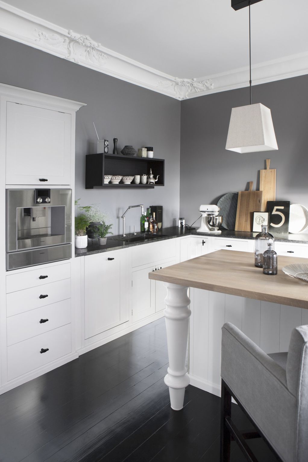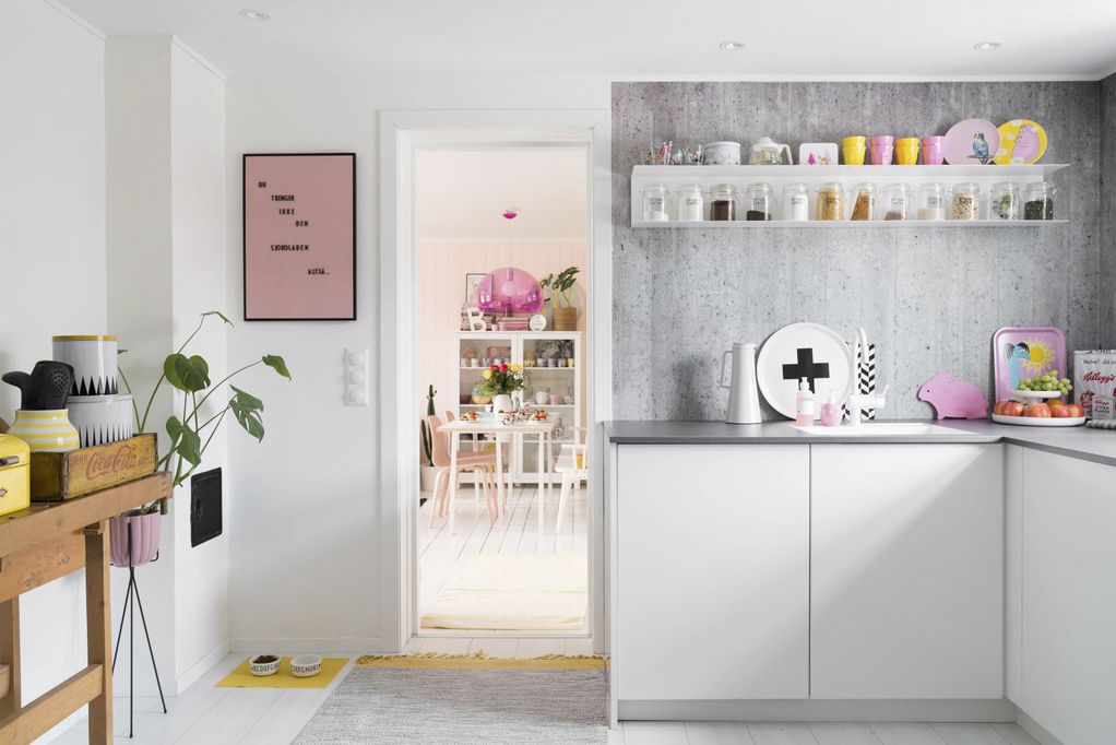 Нежните, бледо сиви бои се одличен избор за помалите кујни, но можеби за поголеми простори треба некои делови од похрабра боја за да спречат да изгледа празно или премногу бледо. За големи кујни, на пример, можете да додадете длабока темно сина боја или светла обичка боја.