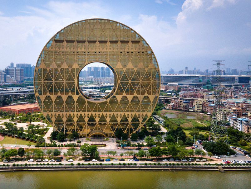 Бидејќи е изграденa во 2013 година, кругот Гуангжу се смета за најголемата кружна зграда во светот. Сместенa е во истоимениот јужен кинески град во провинцијата Гуангдонг по должината на бреговите на реката Перл.Кругот Гуангжу опфаќа 83.000 квадратни метри, се искачува на 138 метри во висина и опфаќа вкупно 33 спрата. Се издвојува од слични кружни згради во светот со дупка во средината на зграда со дијаметар од 48 метри.