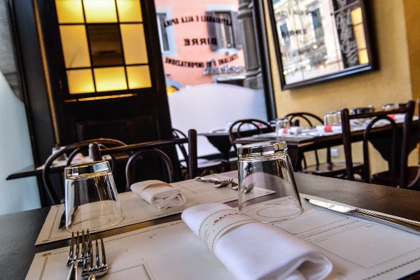 Влезот во ресторанот, кој гледа на атрактивната Via delle Muratte, 50 метри од фонтаната Trevi, ве поканува да влезете внатре и да го откриете целото мени, сместено на пиедесталот од ковано железо. Зад елегантниот прием, хостесата ги поздравува сите гости во ресторанот, доверувајќи им ги на брзите келнери, чија услуга е совршена.