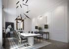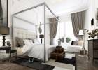 Динамиката на овој прогресивен дизајн се прелива со леснотијата во просторот. Спалната соба има неутрални нијанси кои лесно се вклопуваат со црно – белиот дизајн.Кревет со кариран рамка опкружен со деликатни парчиња на мебел и елегантен акцент парчиња. Завесите се прекрасни и го подобруваат целокупниот простор. Мали акценти на одредени украси, како бели и месингани скулптури, совршено се распоредени како би креирале одличен хармоничен ефект.
