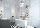 Мозаикот од плочки во бањата е нешто што на ниедно друго место не можете да го видите. Црно-белиот распоред тука е мошне сензационален. Од прекрасните кружни металик огледала, до неверојатниот простор за оставање на одредени работи под лавабото, комбинација на беспрекорност и прогресивност во овој простор е неочекувана и неверојатна.