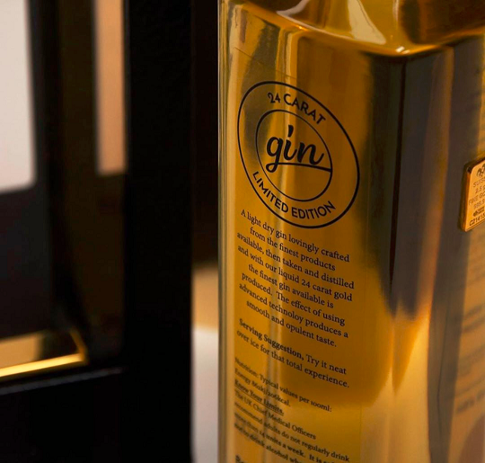 Станува збор за најновото издание на Liquid Gold Alcohol, претставено како 24-каратен џин, што, како што можете да претпоставите, е направен со употреба на чисто злато. Произведен во Велика Британија, овој луксузен џин содржи богати билки како што се лаванда, семе од анасон и смрека, сите измешани со допир на течно злато. Џинот е создаден како рачна изработка од професионални миксолози, и нуди свеж вкус со мазна завршница.