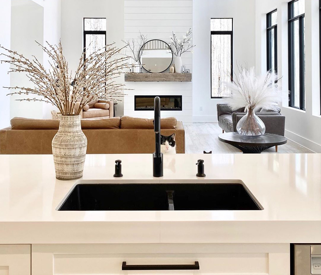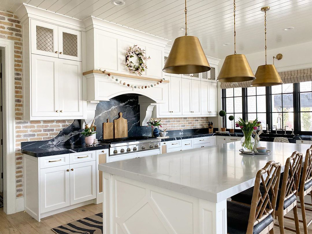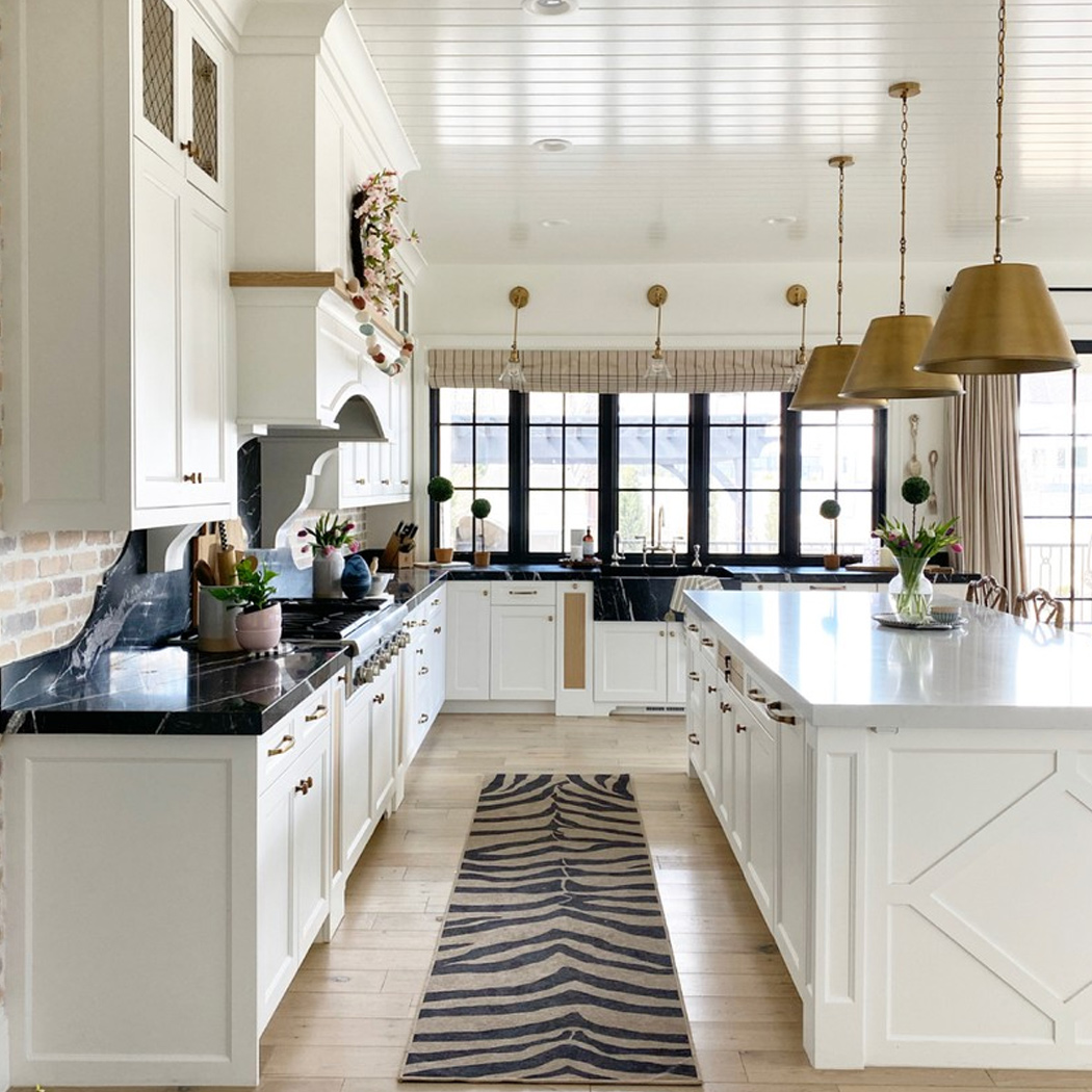 Mysha од @remingtonavenue е експерт за користење мешавина од дрво, метал, како и дизајни за да создаде хармоничен распоред! Секој дел од нејзината кујна користи мешавина од бело и златно без притоа да ги прави претежно женствени со употреба на златни метални светилки кои го балансираат просторот.