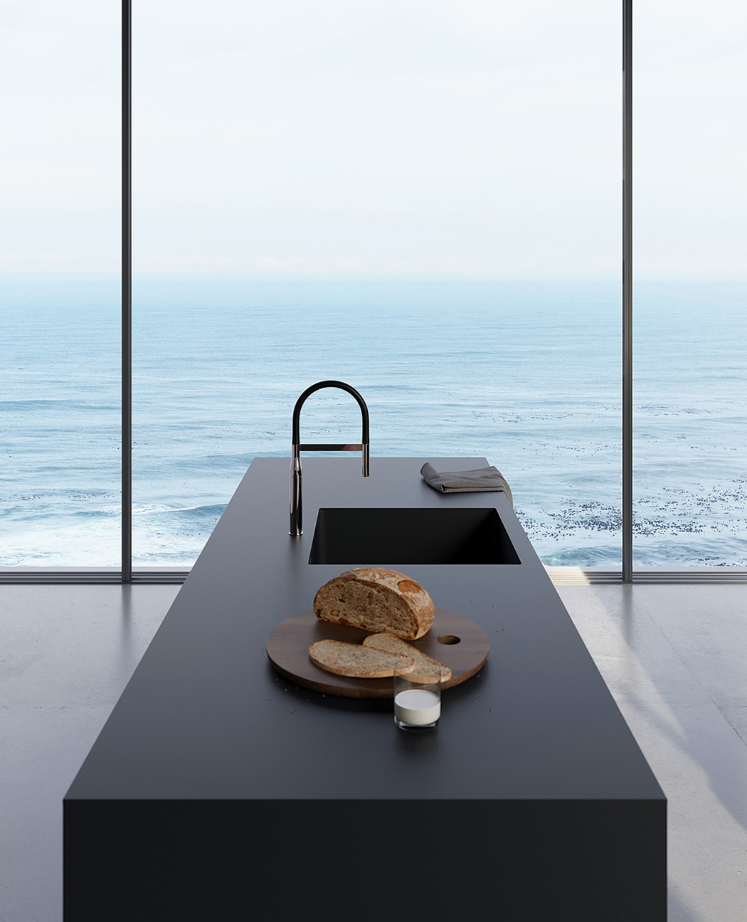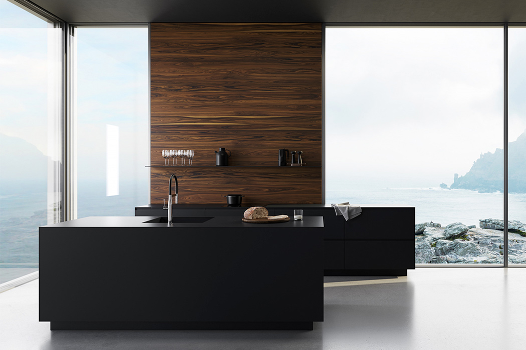 Овој модерен дизајн на кујна од Edvinаs Skiestenis е совршен за нашите модерни домови! Матните црни пултови, полиците и плакарите успеваат да додадат елегантно урбано чувство.