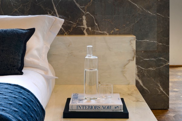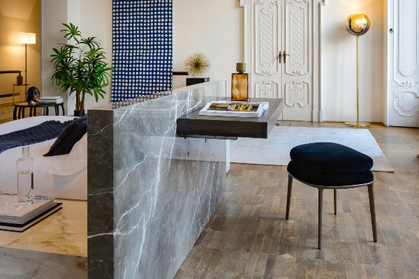 Референците дизајнирани на поставените перници се вклопуваат во сите правила што ги носи мермерот и ги претвораат елементите што го красат во архитектонски структури, задолжени за централизирање на мебелот со неговиот личен идентитет на кој било простор.