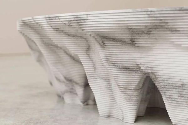 Секоја маса е создадена од еден блок мермер, што само по себе гарантира дека секое парче е уникатно и дека никој не е ист. Слоевит ефект на мермер се постигнува со традиционални техники на обликување. Табелата е завршена со брусење и полирање, за совршено да се нагласи мазноста и сјајот на мермерот.
