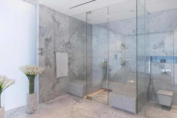 Прекрасно украсените спални соби добија прекрасна декорација и дизајн, исто како што е случајот со осумте раскошни бањи, украсени со италијански мермер, заедно со брендирани бањарки и крпи.